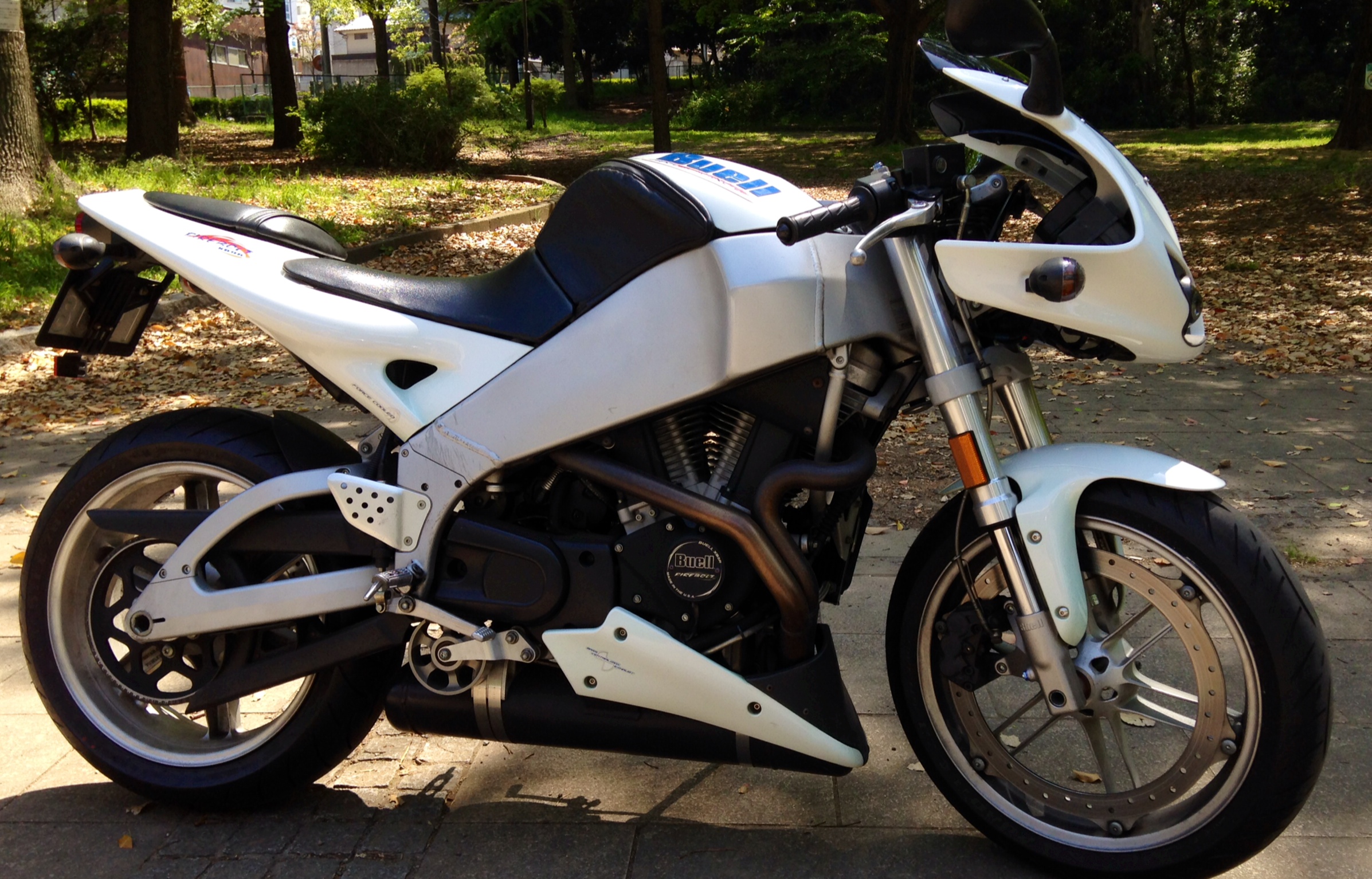 2015年9月22日 / 最終更新日 : 2017年6月28日 tanamino パーツ ガソリンタンクはフレーム? 図太いアルミフレームがガソリンタンクになっているため、普通のバイクのガソリンタンクにあたる部分はエアクリーナーボックスです。Vツインエンジンの前後のシリンダー間にインジェクション(ガソリン気化噴射装置)が位置しています。 […]