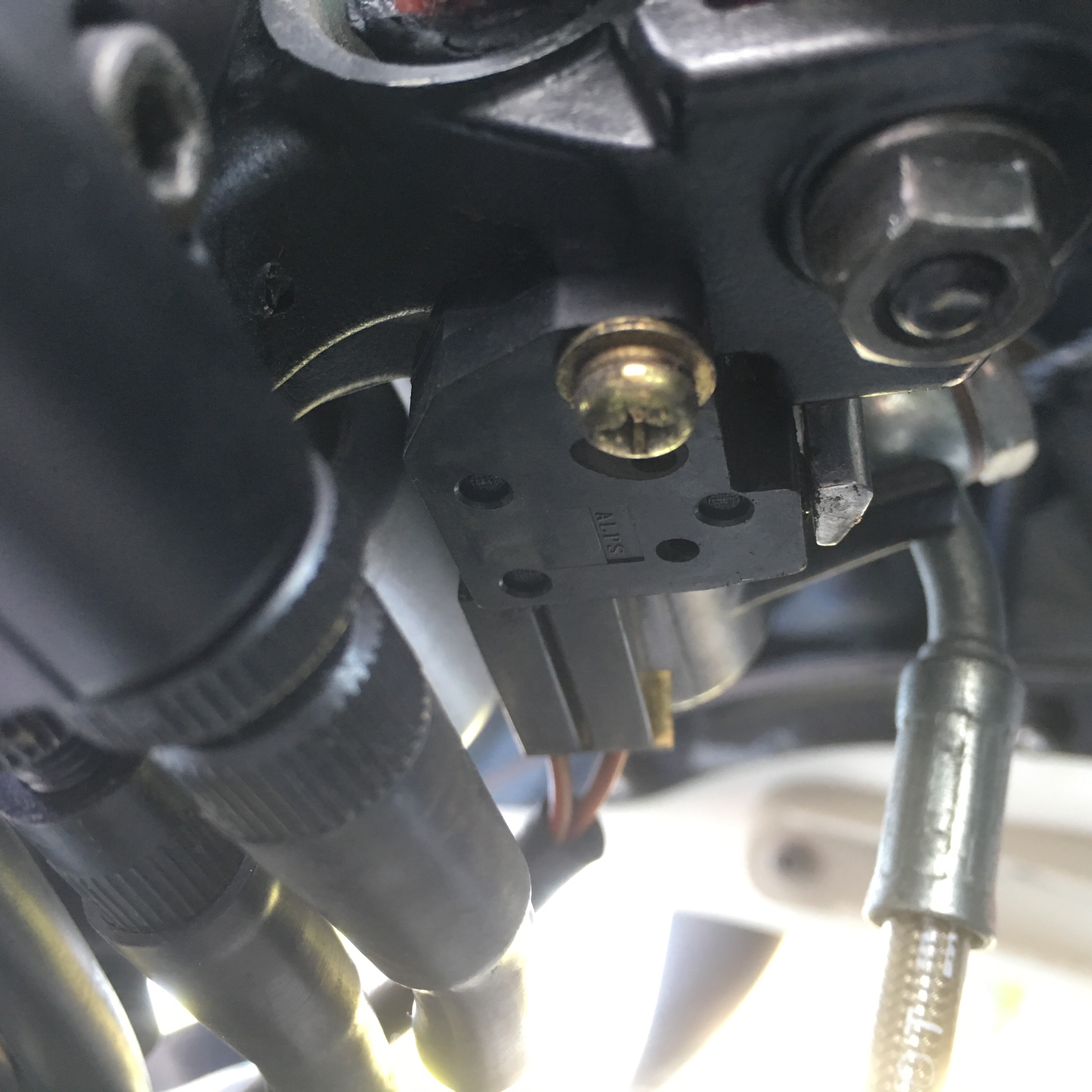 今回の車検時にブレーキランプの点灯がスムーズではないということで、F(フロント)ブレーキスイッチというパーツを新品に交換してもらった。アクセルハウジング(スタータースイッチボックス)の裏に付いている部品だ。お店スタッフによると、既に純正部品は手に入りにくく、もし入ったとしても高価なため、国産H車用のパーツを、デイトナからお取り寄せしてくれたとのことだった。色々な国のパーツを使っている「部品多国籍軍」のビューエルは日本製のパーツも多用しており、このように国産車用のパーツを流用することが可能な場合があるのだ。部品代単体で¥2,160だった。
